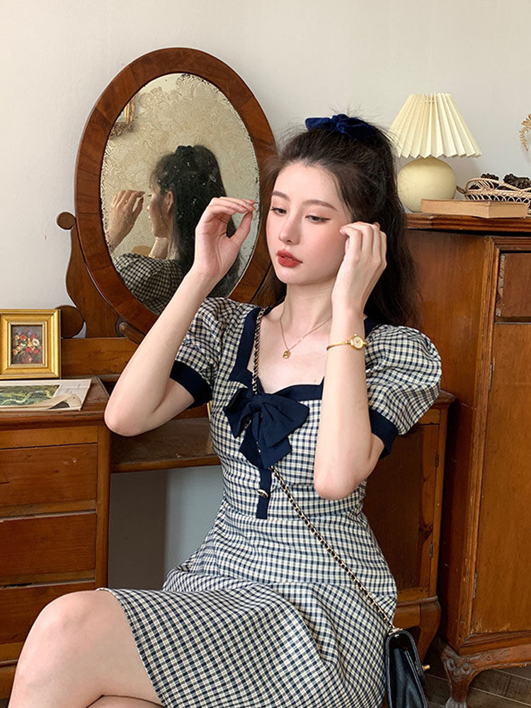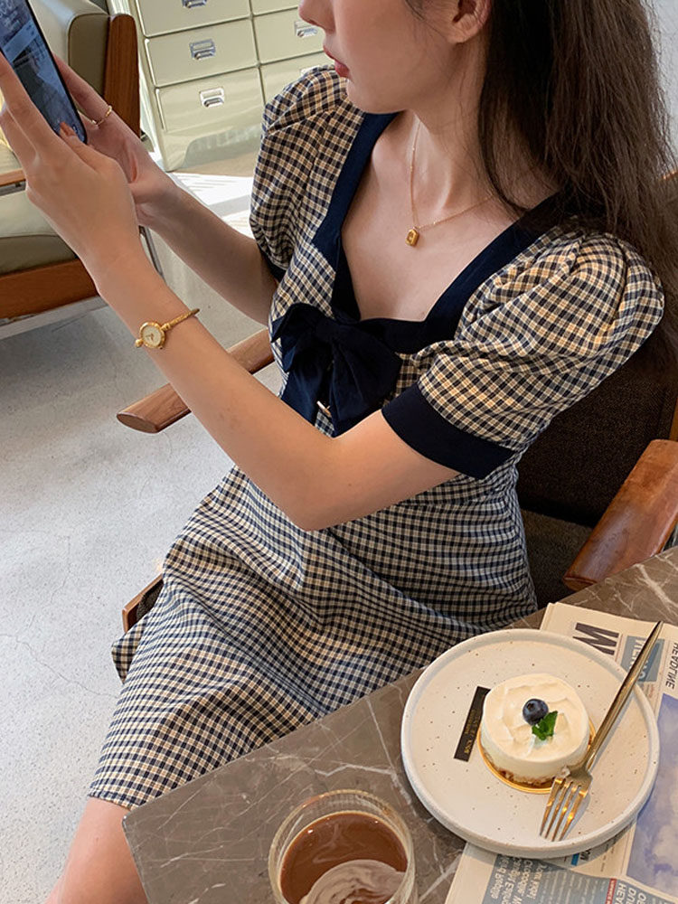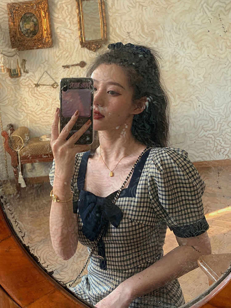 2020 new feminine temperament goddess fan dating small skirt gentle wind puff sleeves square neck dress summer