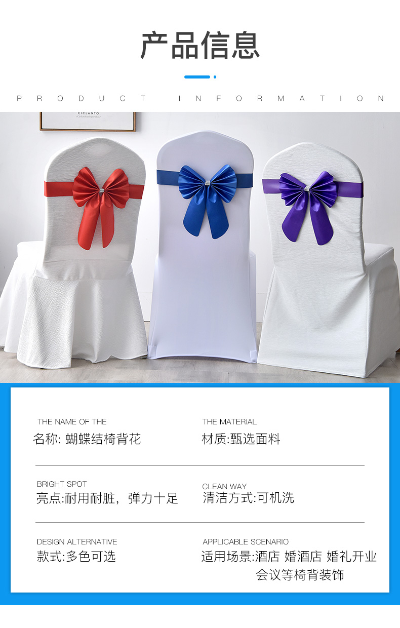 Tie-free elastic strap stirrup with backrest decoration elastic chair sleeve butterfly knot to show wedding celebration elastic backrest flower