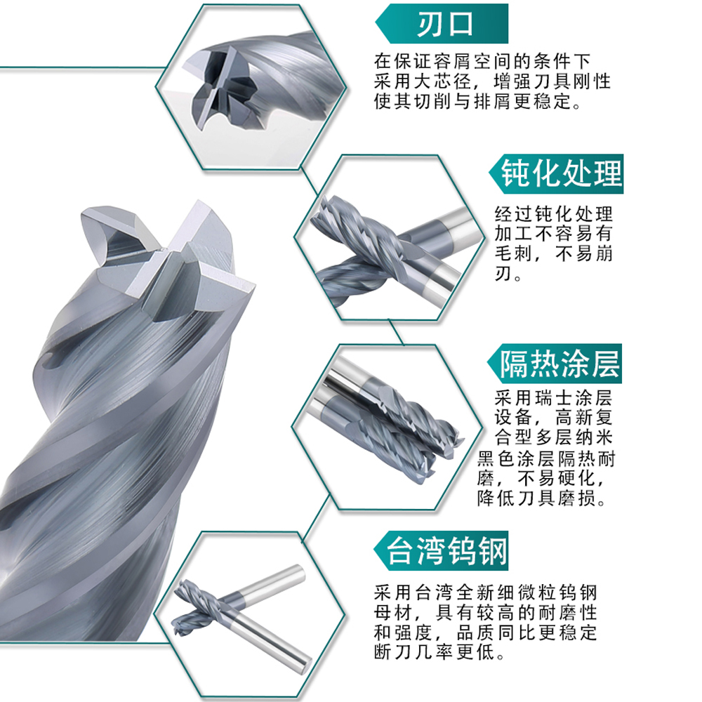 Tungsten steel milling cutter 4-edged carbide four-edged long straight shank flat bottom end mill machining center cnc CNC tool