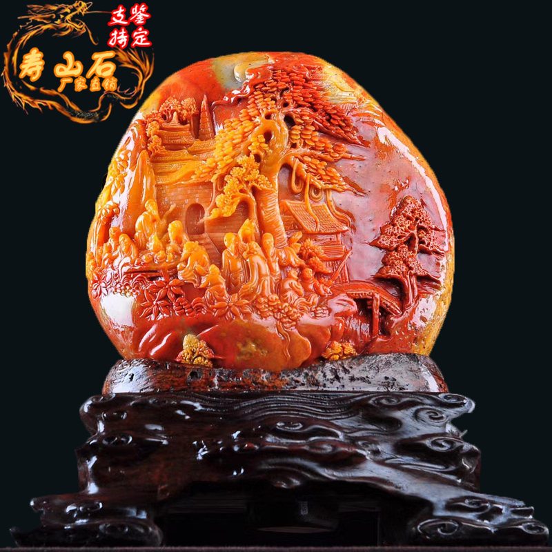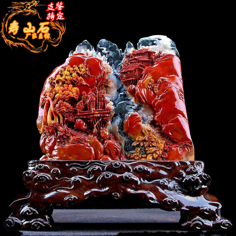 Fine Shoushan stone ornaments put pieces of seal fine carving stone carving chicken blood stone jade living room Zhao Cai town house hibiscus stone