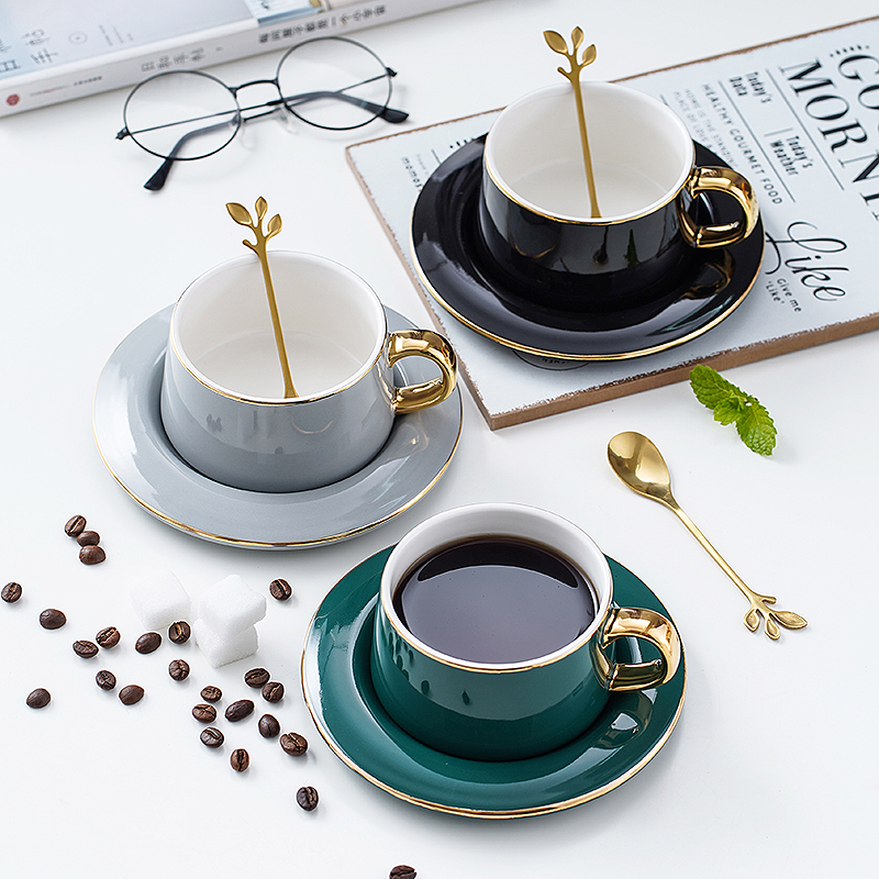 Light Luxury English ceramic coffee cup dish send spoon Simple European small luxury Couple afternoon tea cup gift set