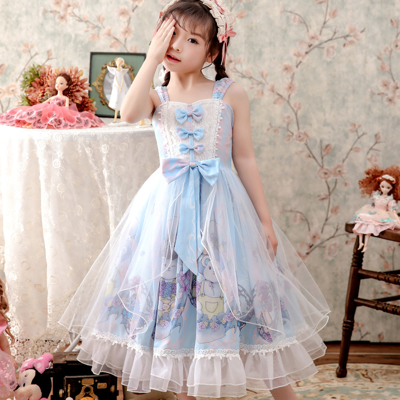 Children's Roleita Cute Girl Princess Dress Printed Little Girl Laura Skirt Lace Short Sleeve Dresses Thin Spring Autumn