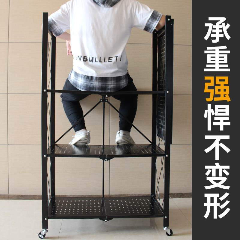 Foldable shelf Installation-free kitchen shelf Floor-to-ceiling multi-layer microwave oven iron rack with wheels storage shelf