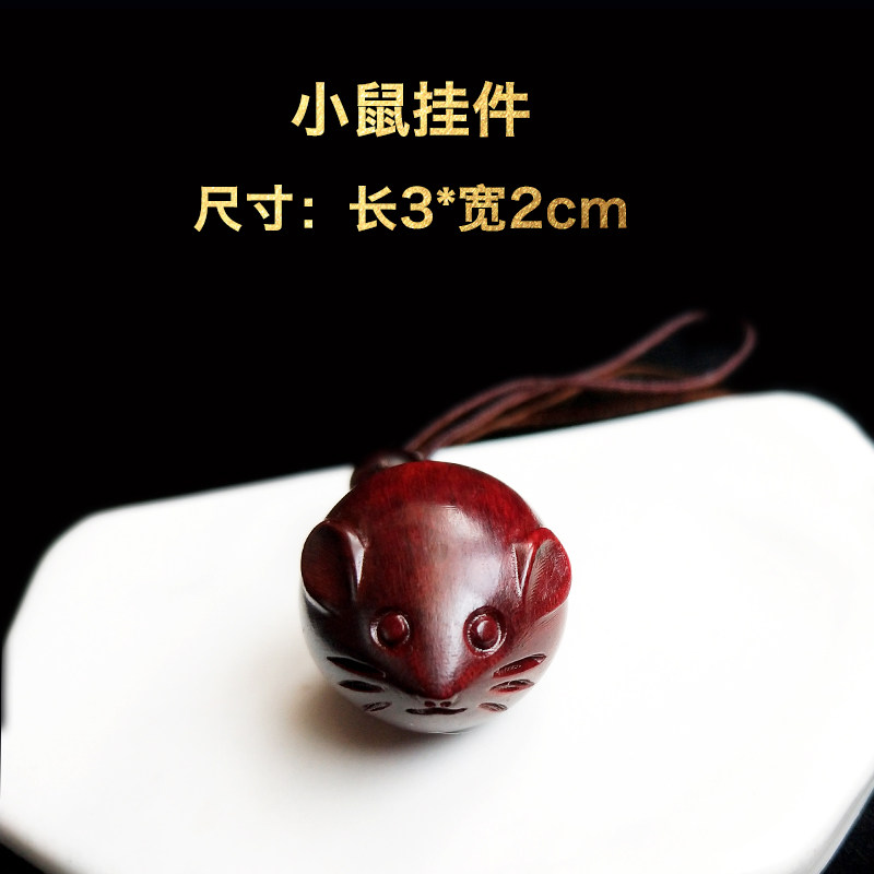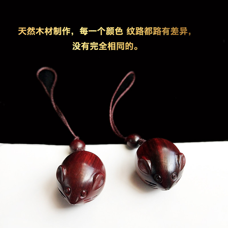 Rosewood cute zodiac mouse mobile phone pendant Car key pendant Male and female couples Year of the Rat year of life carved