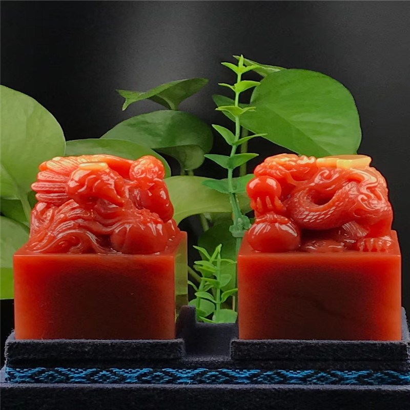 Lao stone crystal watermelon red mother and son deep seal Suzhang Lao Tian Huangshi Dragon and Phoenix Zhang Yuan Shi Chicken blood