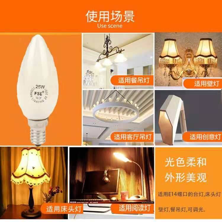 Foshan bulb lighting bulb tungsten wire candle-shaped bulb sharp bubble E14 European style chandelier 15W25W40W60W