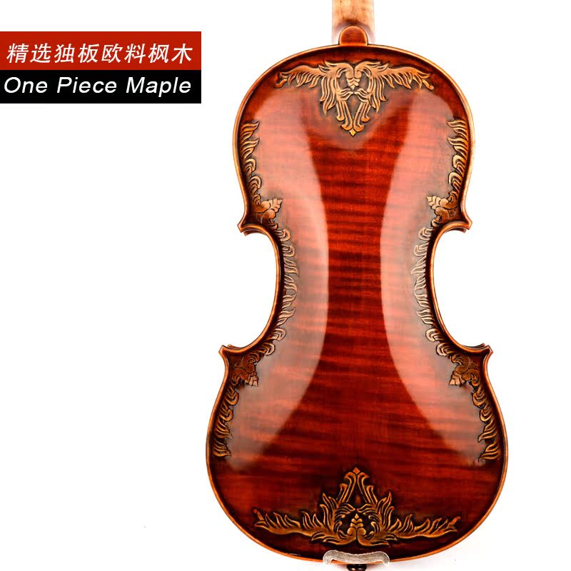 Pure hand-made professional performance-grade single-board carved violin 44 to send hemp bow high-grade violin box shoulder rest