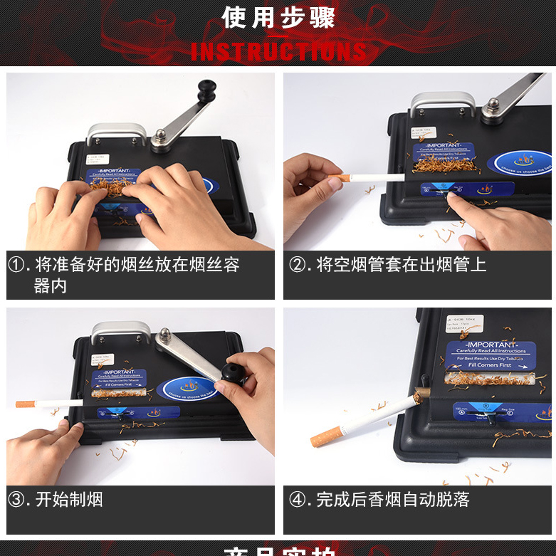 Japan Black Cool Pure Manual Rolls Tobacco Machine Stainless Steel Durable Rolls Cigarettes Smoked Cigarettes Smoked Effect Good No U-turn