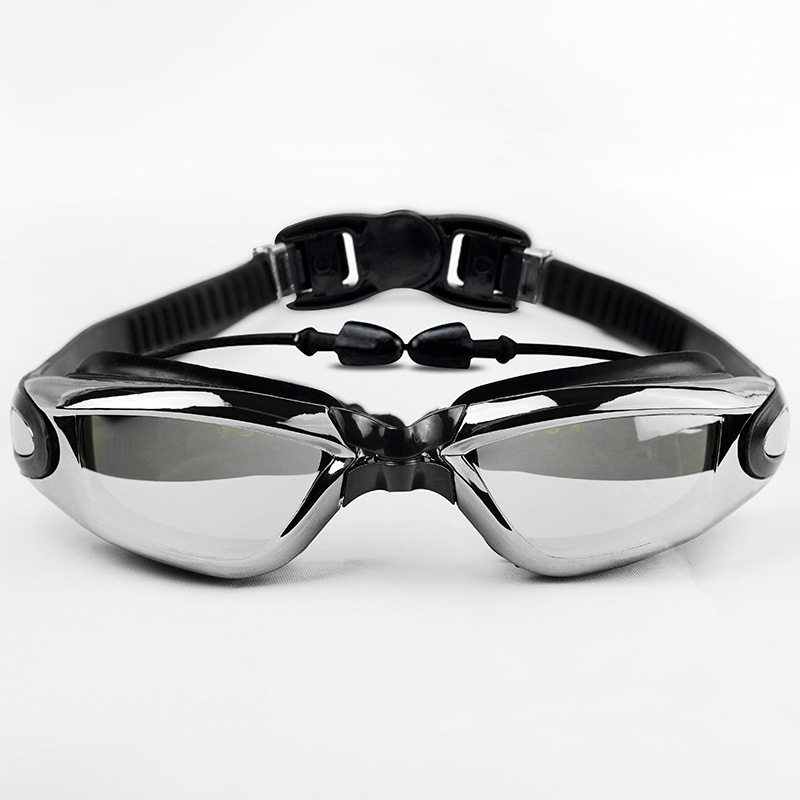 Swimming goggles men and women universal waterproof anti-fog high-definition swimming glasses transparent eye protection glasses equipped with earplugs integrated diving mirror