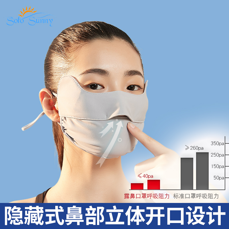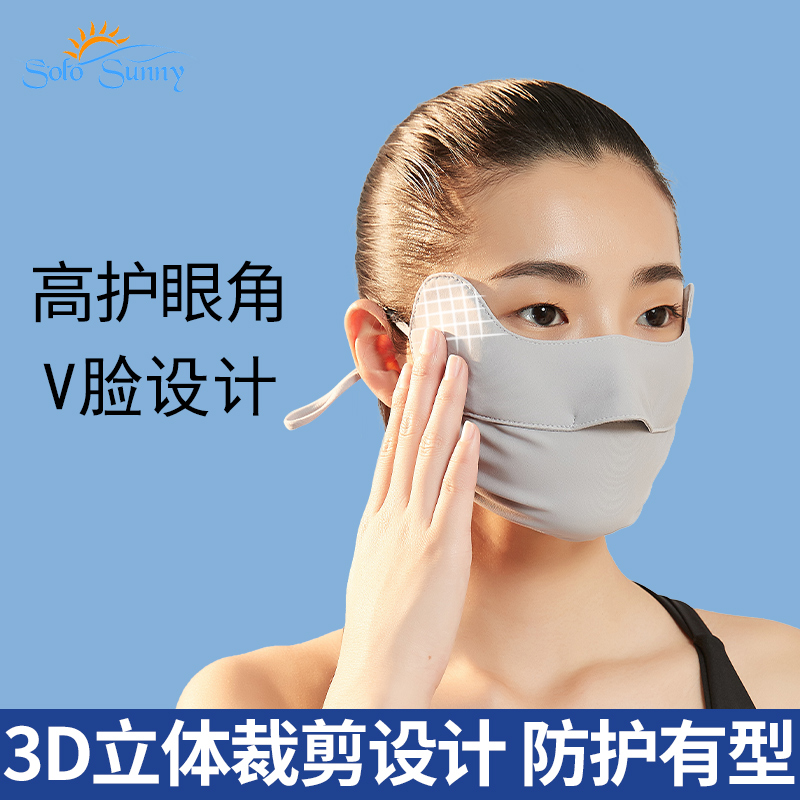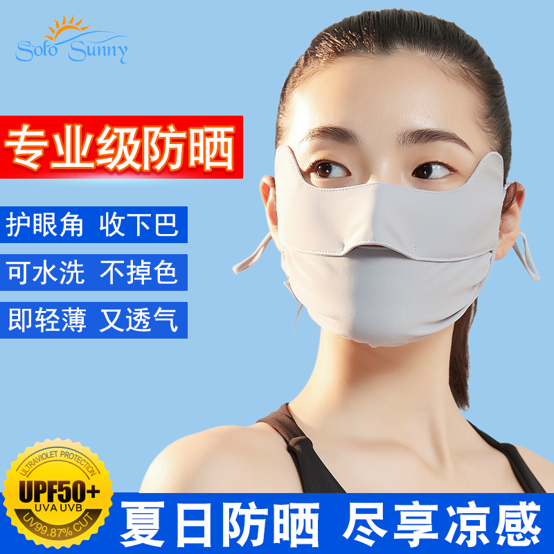 SoloSunny eye protection sunscreen mask female anti-UV full face summer thin breathable ice silk mask male