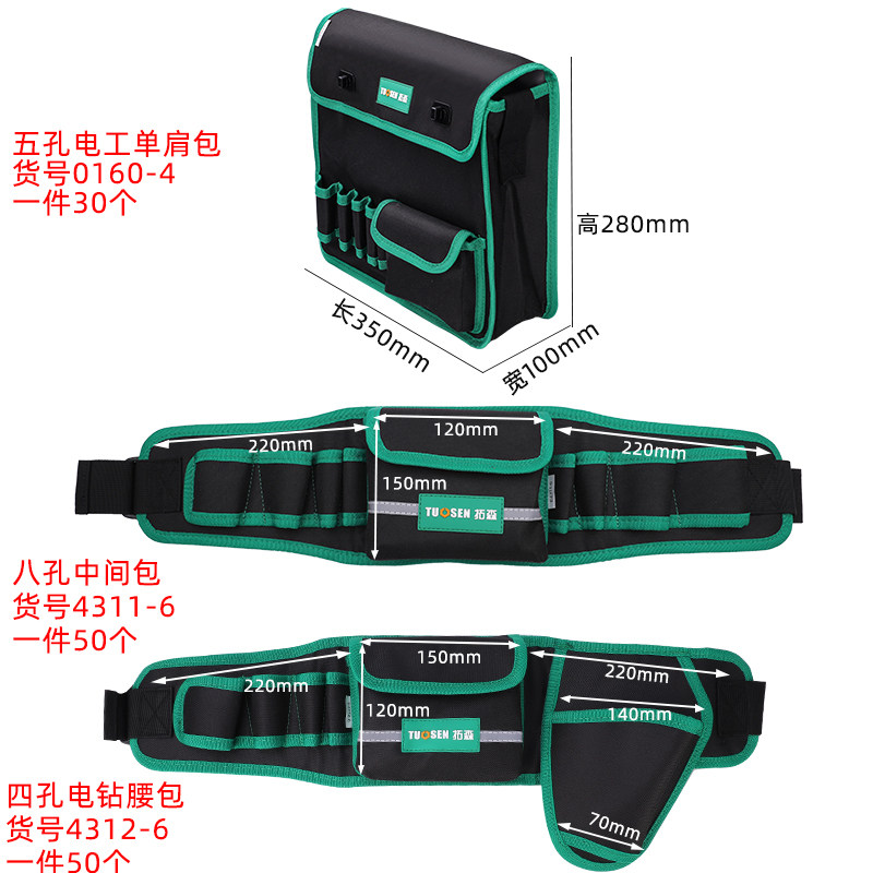 Eight-hole intermediate pack four-hole electric drill pocket five-hole electrician single shoulder bag
