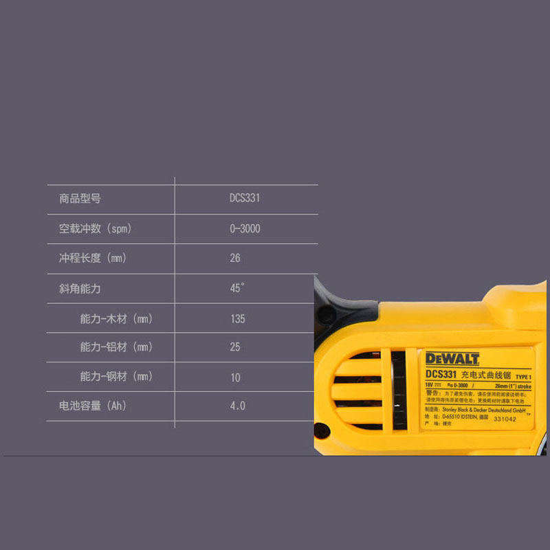 DEWALT Weiwei 18V lithium electric curve saw rechargeable straight saw wood cutting tool curve saw DCS331