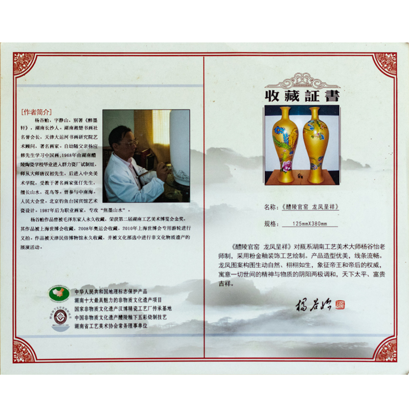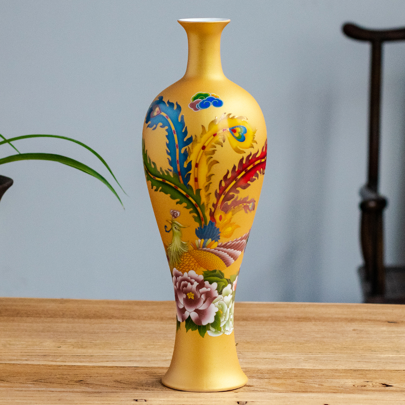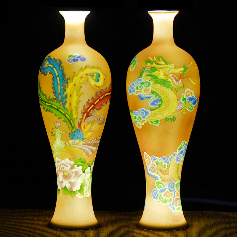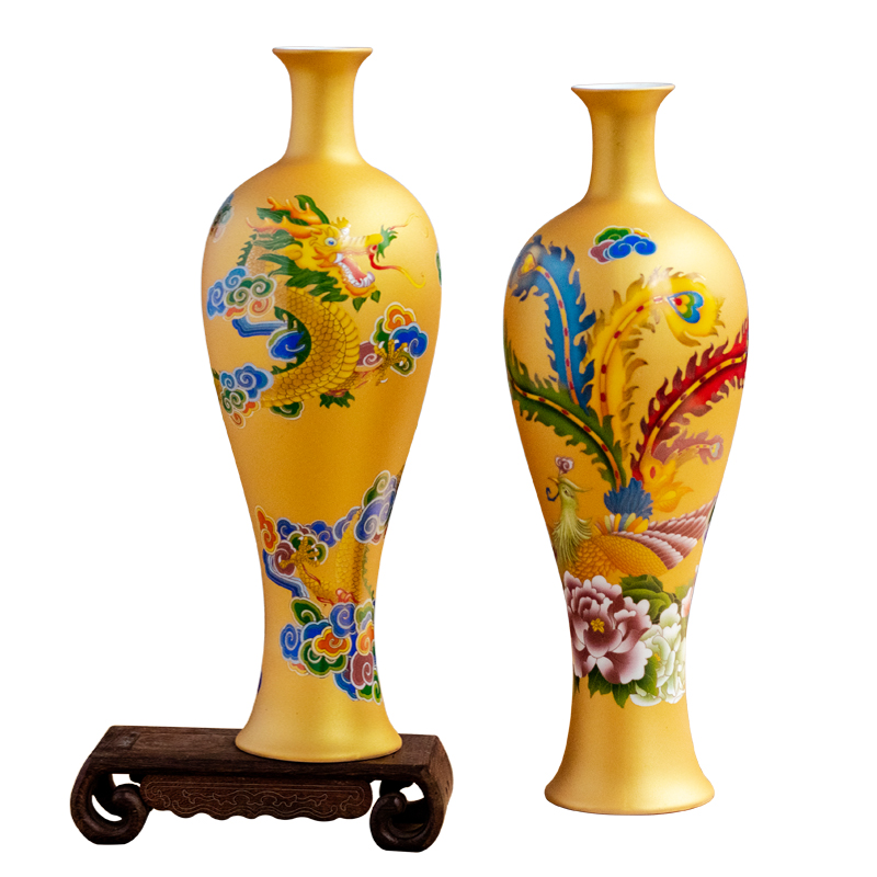 Powder gold glaze craft dragon and phoenix Chengxiang vase-to-bottle special commemorative porcelain decorative ornaments for the 110th anniversary of the birth