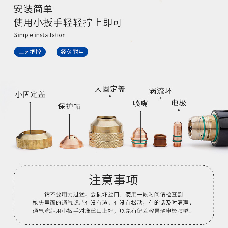 Huayuan fine plasma LGK300IGBT cut gun YK300 electrode 230302 nozzle 230303 protective cap