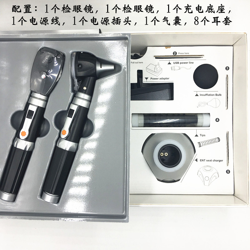 Rechargeable otoscope, electric otoscope, rechargeable ophthalmoscope, ophthalmoscope, rechargeable ear test, eye test combination, look at the ear drum