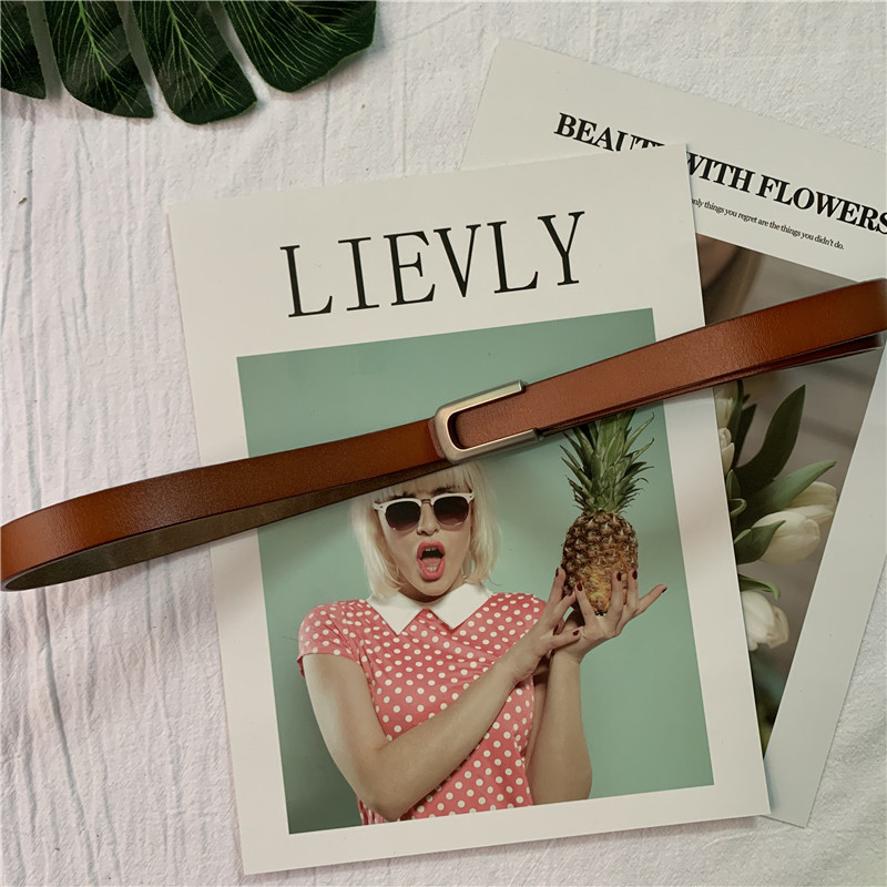 New genuine leather slim belt lady U shaped belt head minimalist Korean version ins retro belt women casual decorative pants with tide