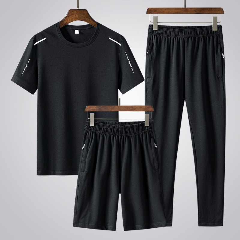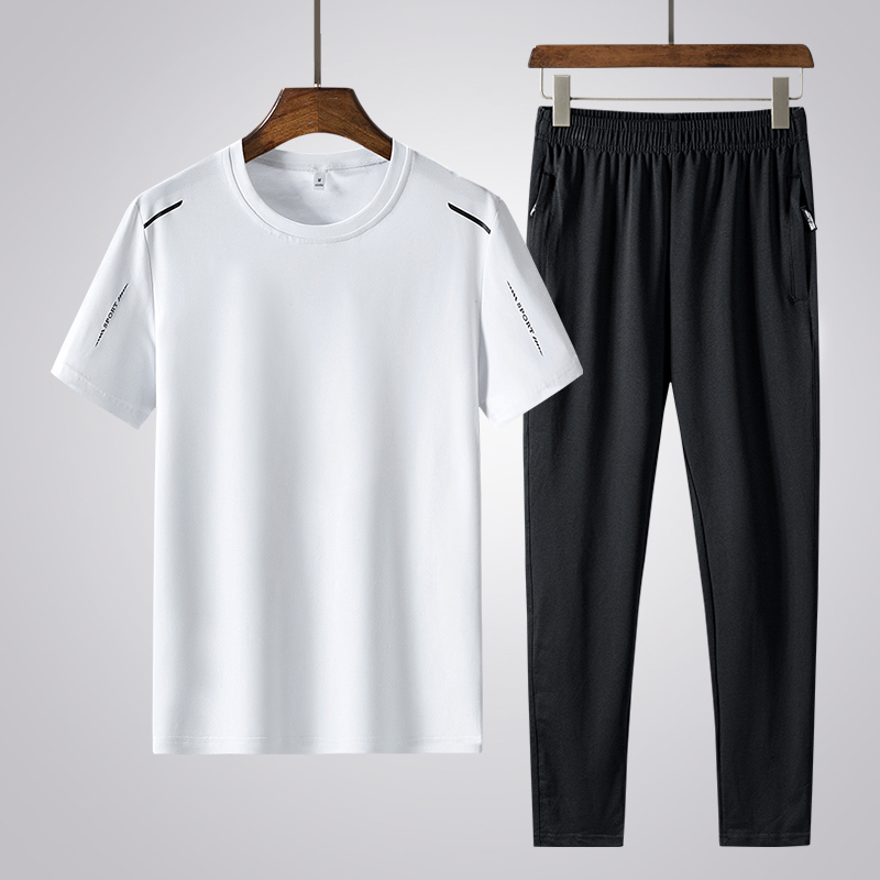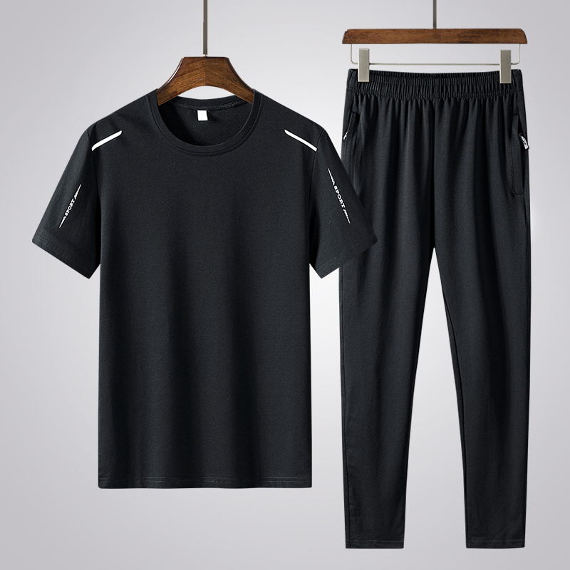 Middle-aged and elderly sports suit men's summer thin section short-sleeved dad wear casual cotton round neck T-shirt large size two-piece set