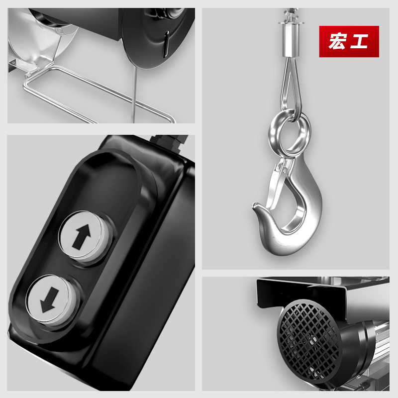 Fast micro electric hoist 220v household small crane hoist 1 ton winch construction hoist crane
