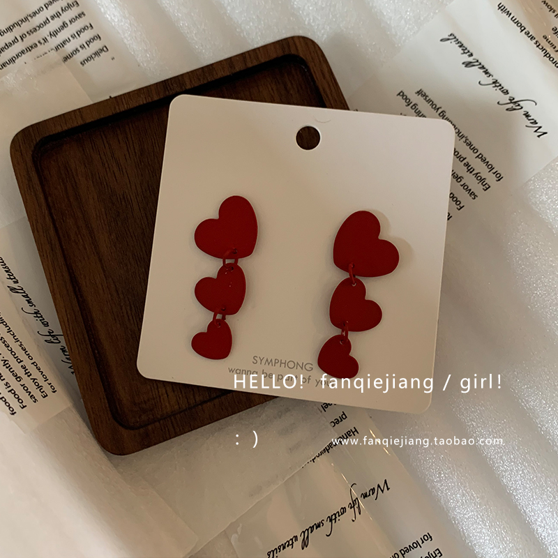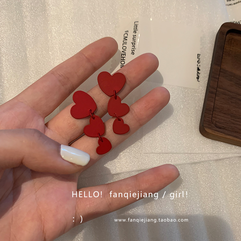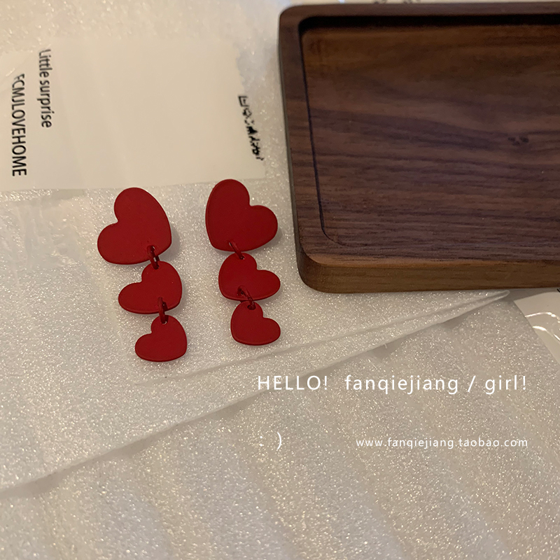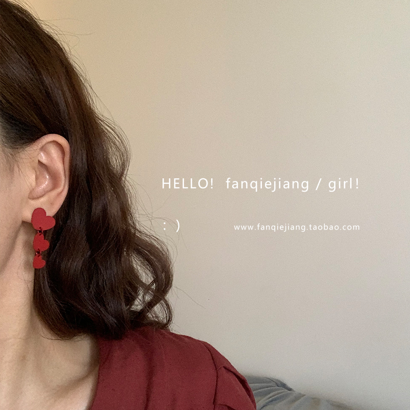 Retro Red Size Loving Splicing Earrings Earrings Girl 2020 New wave South Korean temperament French style net red