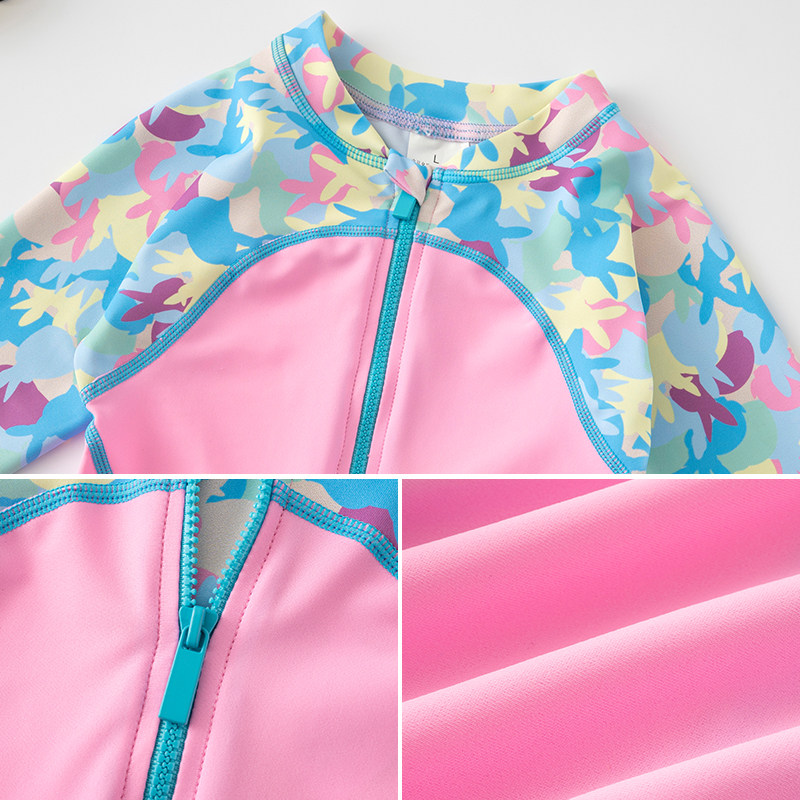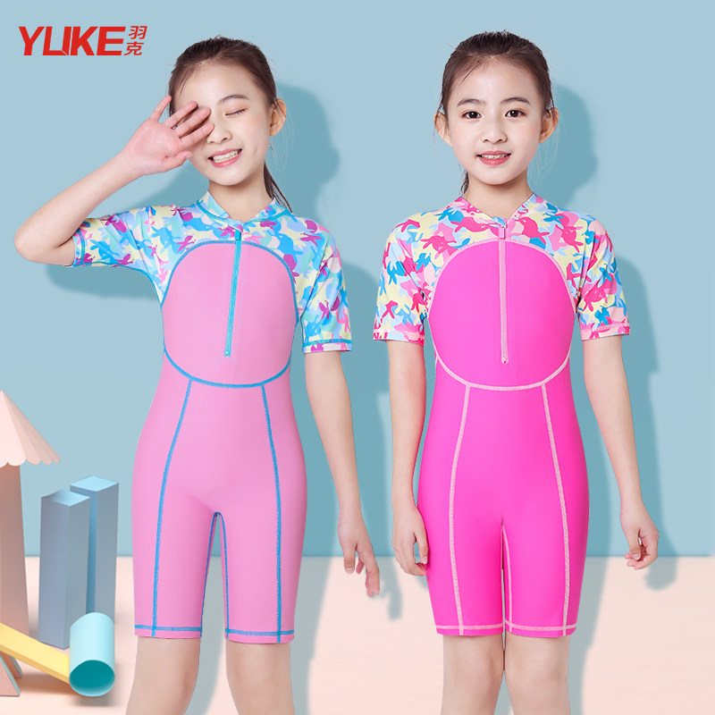 Children's swimsuit camouflage long sleeve short sleeve conjoined flat corner boys and girls Big children sunscreen fashion swimming hot spring swimsuit