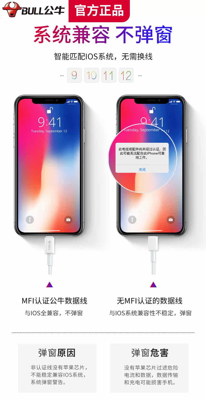 Bull apple x data line suitable for flash charging iphone6s 7 XSmax 8plus Android type-c