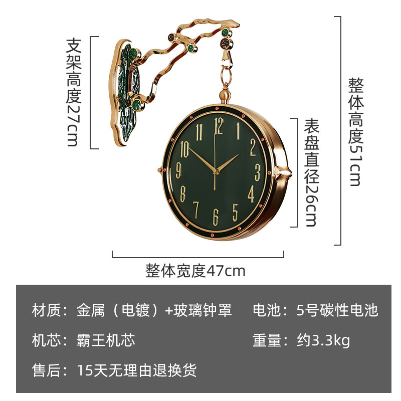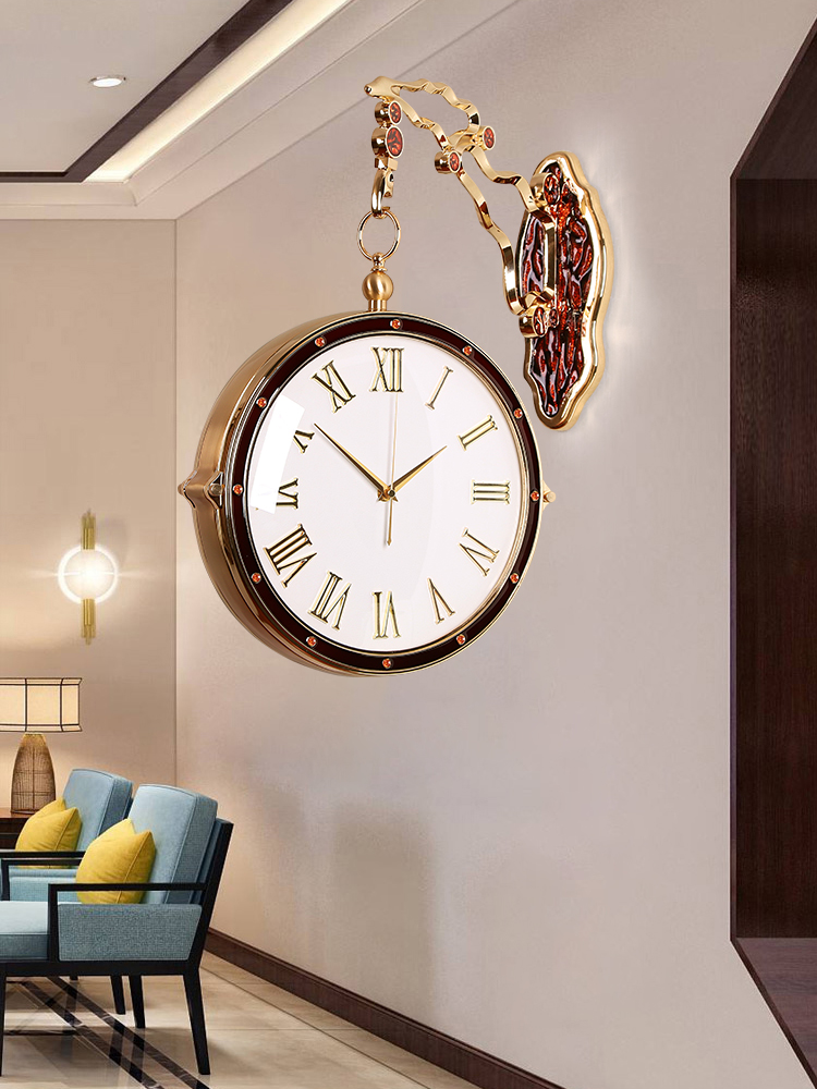 New enamel color light luxury clock double-sided wall clock living room modern European home fashion two-sided mute quartz clock