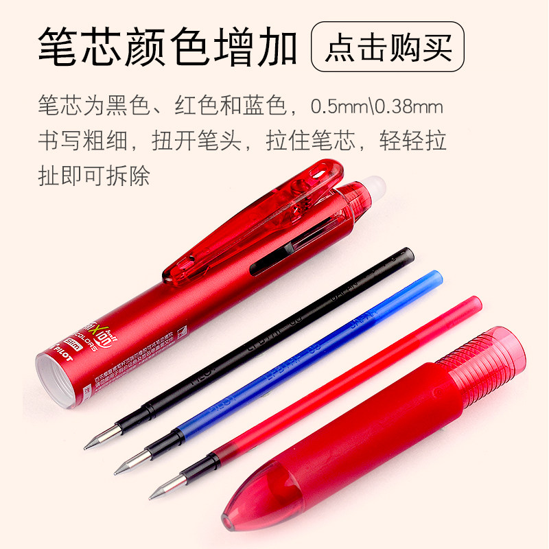 Japan imported Belle three-color erasable pen gel pen cute frixion hot erasable blue water-based pen refill 0 5 Black friction pen Third grade schoolgirls official flagship store official website