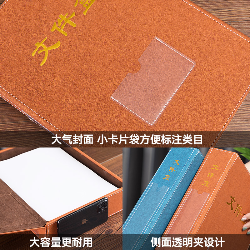 Thick a4 file box large capacity PU leather file storage box award certificate personnel financial voucher collection party building data file box hidden buckle vertical office supplies desktop finishing induction box