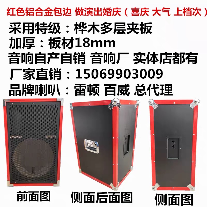 Double single 15-inch red aluminum alloy audio empty box outdoor waterproof professional stage performance wedding speaker shell