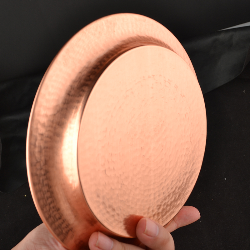 Tibetan pure red copper supply plate hand-knocked pattern for water purification cup eight supply cups and bowls water supply plate flat-bottomed fruit plate