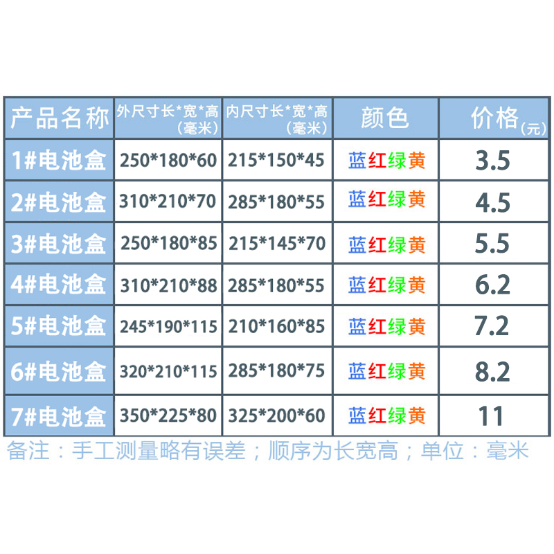 1#battery box(250*180*60) - Blue 2#battery box(310*210*70) - Blue 3#battery box(245*177*80) - Blue