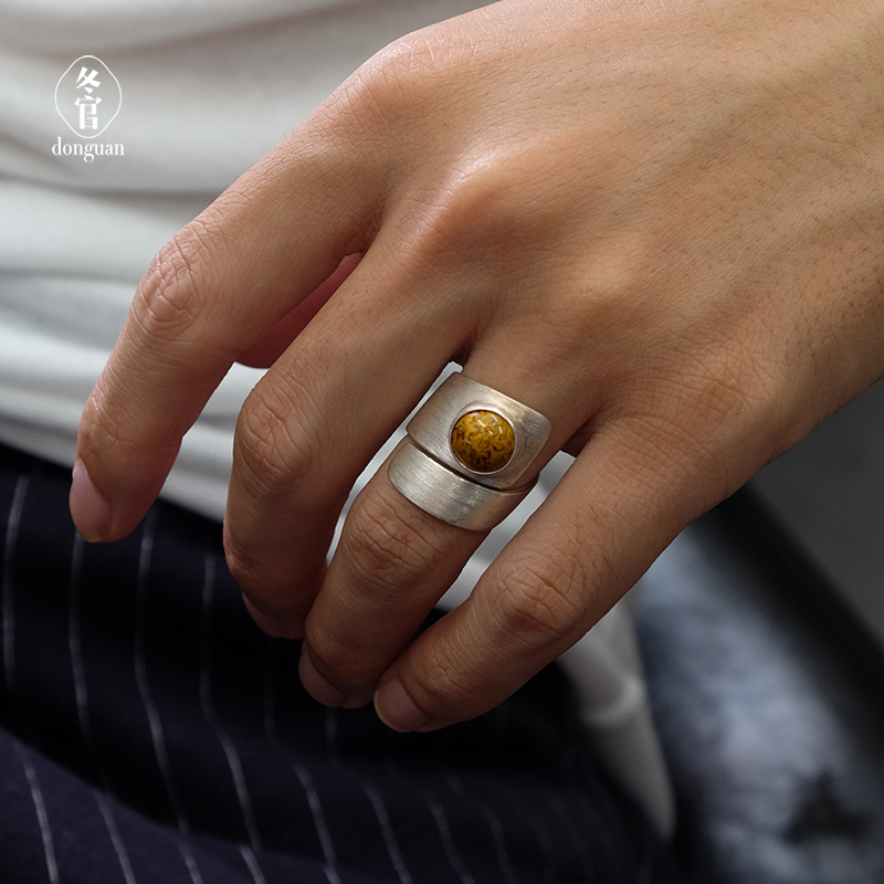 Winter official lacquer high-quality sterling silver with shape open couple ring female long version cold wind niche design simple