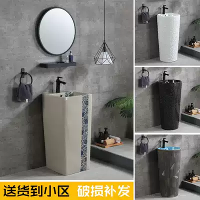 Blue and white washbasin column basin balcony sink garden sink vertical integrated antique column Basin