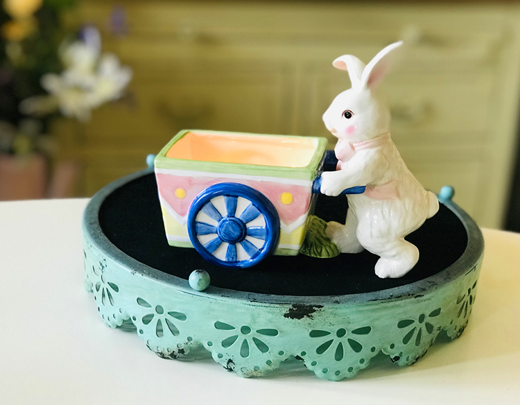 Continuous porcelain raw foreign trade orders Ceramic bunny stroller lifting basket candlestick party pendulum pieces Handicraft Gifts