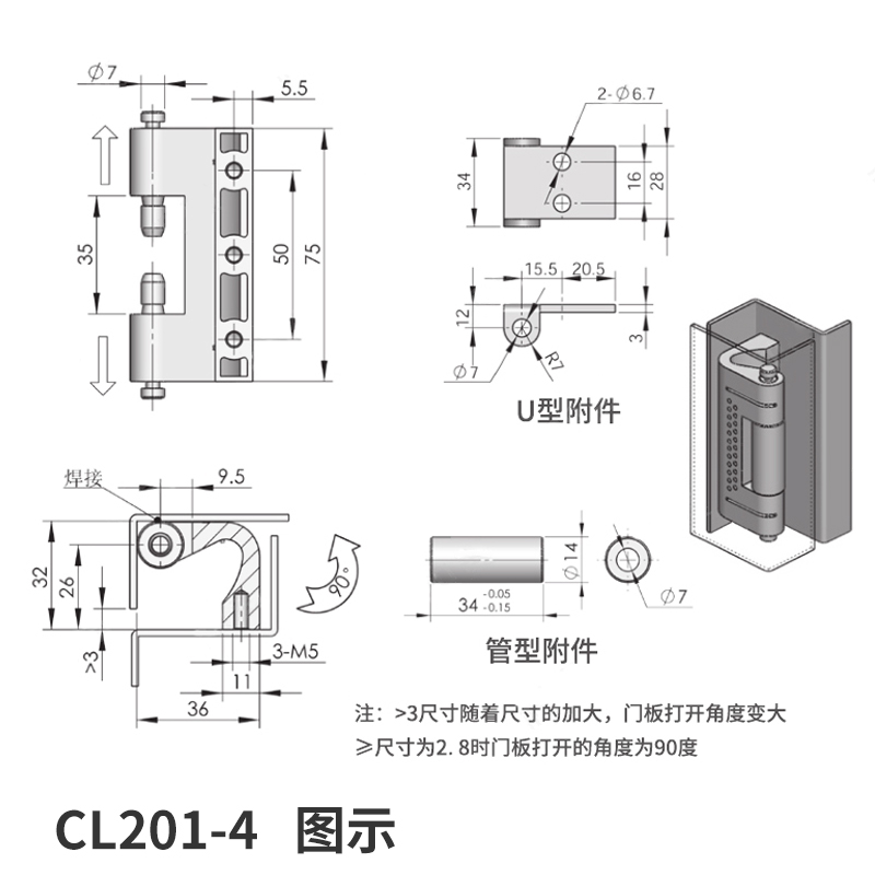 Distribution cabinet hinge CL201-4 Electrical cabinet Zinc alloy hinge Main shell cabinet hinge Industrial cabinet Distribution box hinge