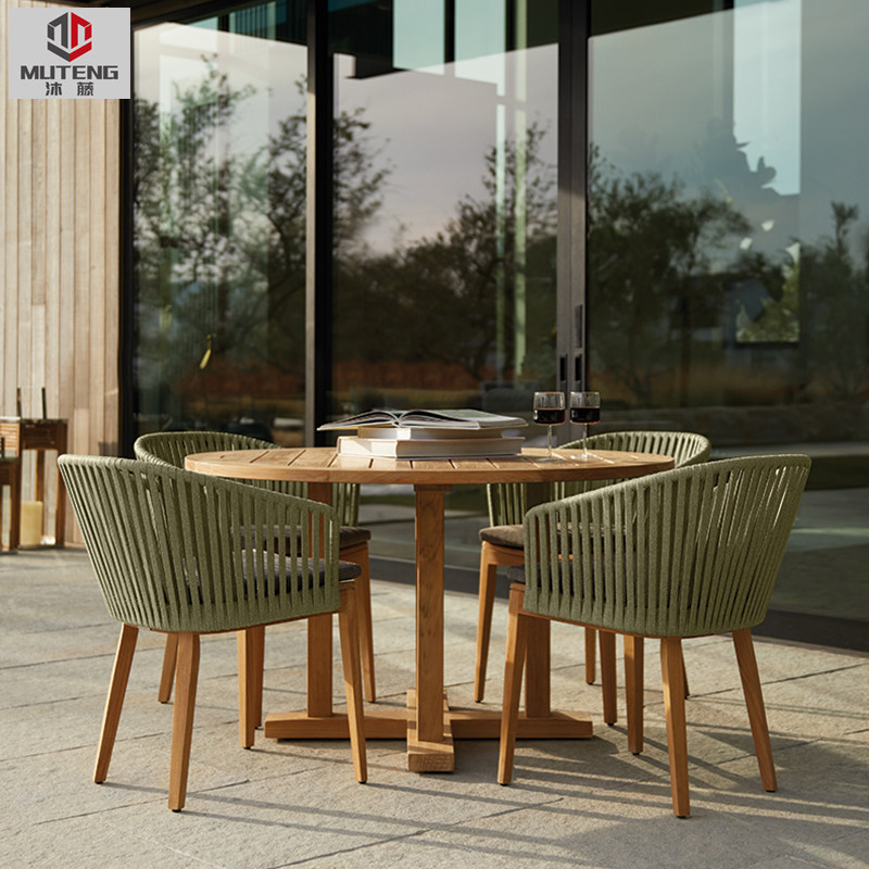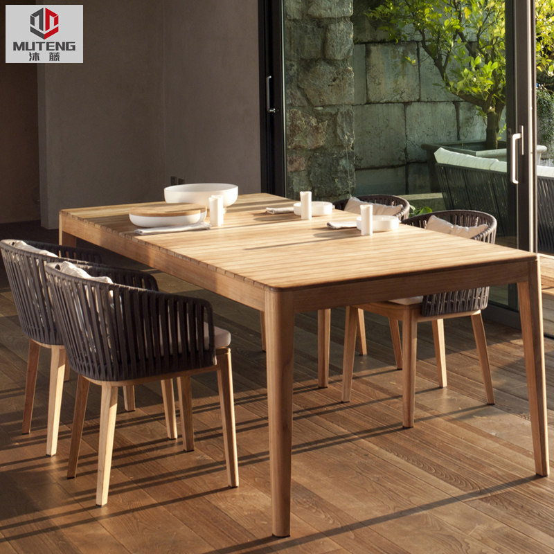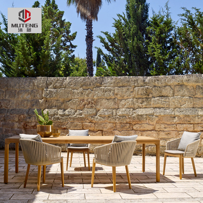 Outdoor table and chair combination balcony courtyard long table Nordic outdoor round table terrace garden square table leisure rattan rattan chair