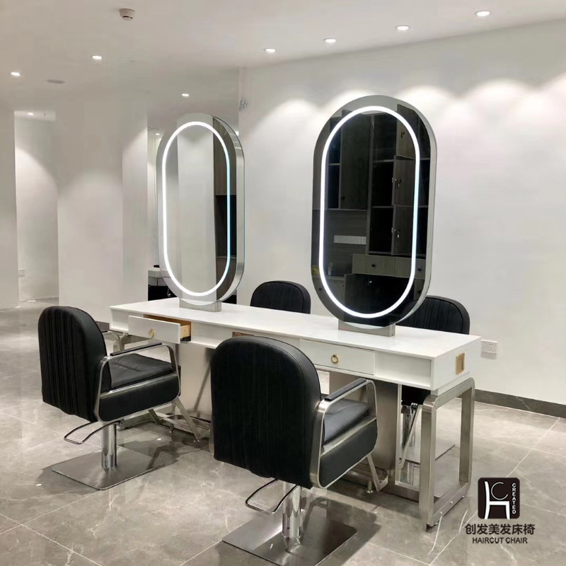 The new hairdressing shop with lights hair salon special hair salon mirror table simple modern hair perming dye single-sided hair cutting mirror