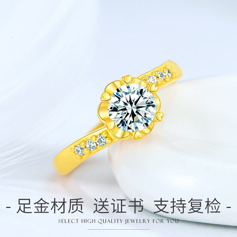 24K pure gold living mouth gold ring female fine style 999 pure gold wedding Valentine's Day gift for girlfriend