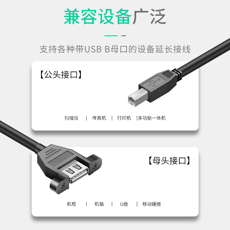 Floating too USB A female transfer meter USB-B male USB-A female USB extension cable female head with ear screw fixed