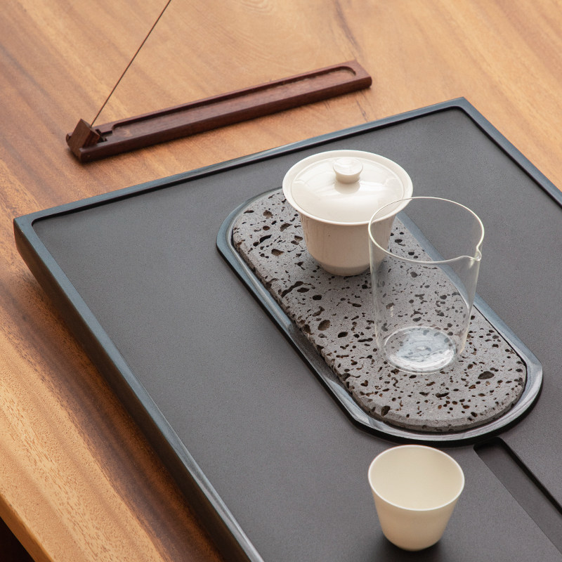 Natural whole black gold stone tea tray household stone drainage tea table simple creative size tea sea tea tray