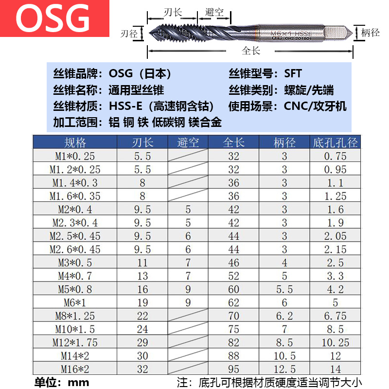 Machine screw tapping OSG stainless steel with EX-SUS screw tip screw tapping M2m3m4m5m6m810 Japan imported