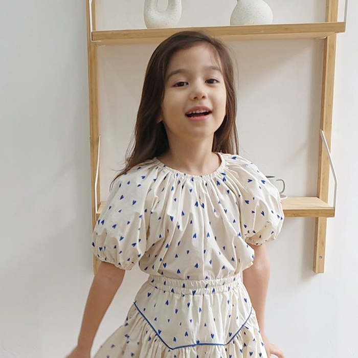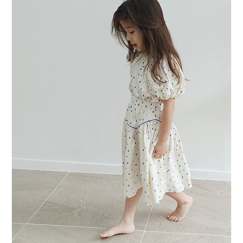 Parent-child Korean children's clothing 2022 summer girl love girl bubble short-sleeved top skirt two-piece suit