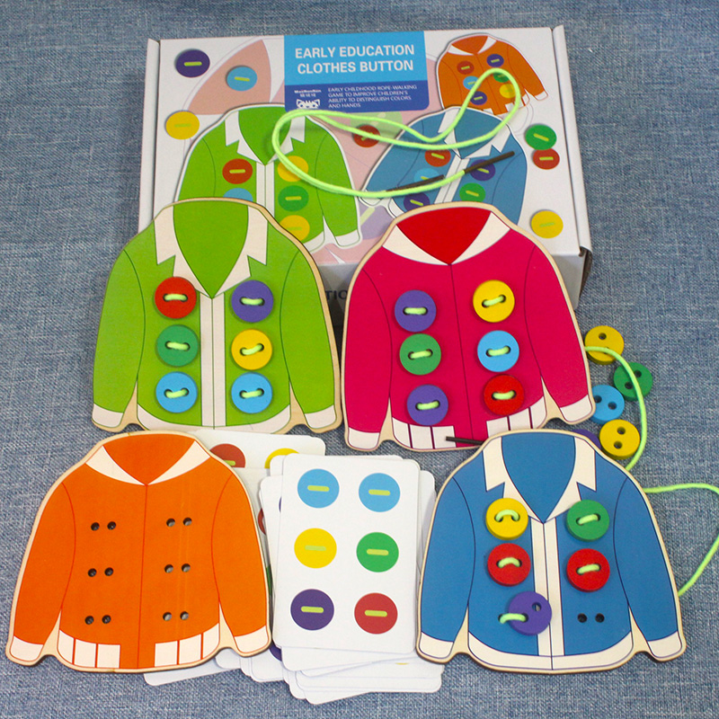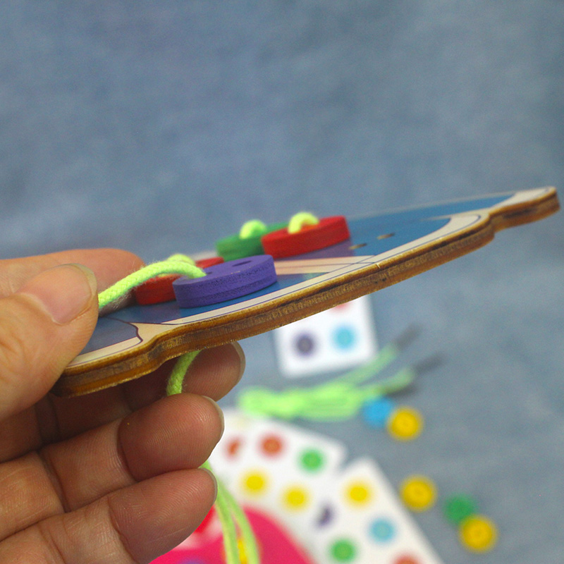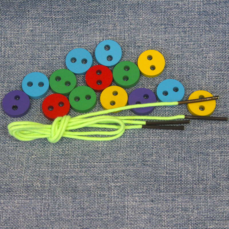 The color of the wooden button threading board of Montessori early education toy is matched with teaching AIDS for middle and primary classes in kindergartens