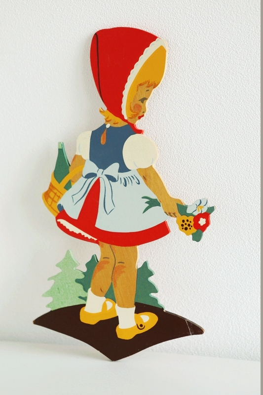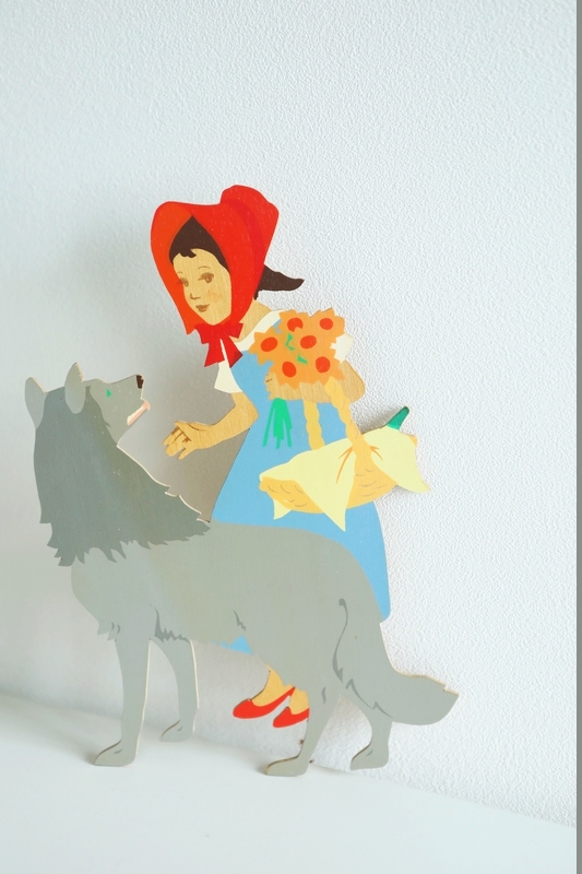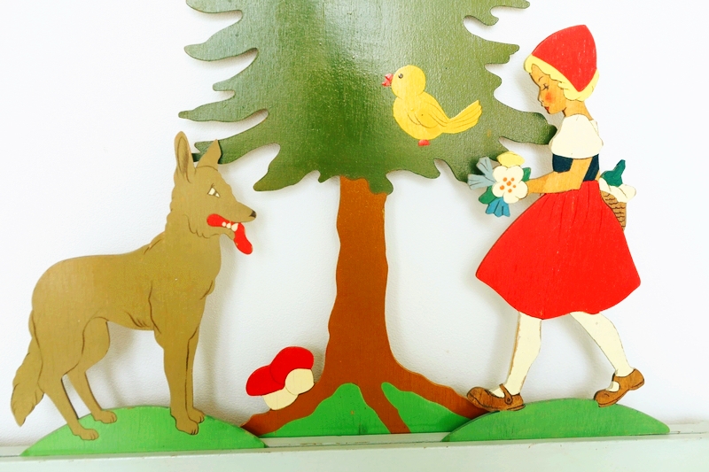 20-06 West Germany 1940S antique hand-painted wooden Little Red Riding Hood and the Big Bad Wolf wall decoration painting a variety of optional