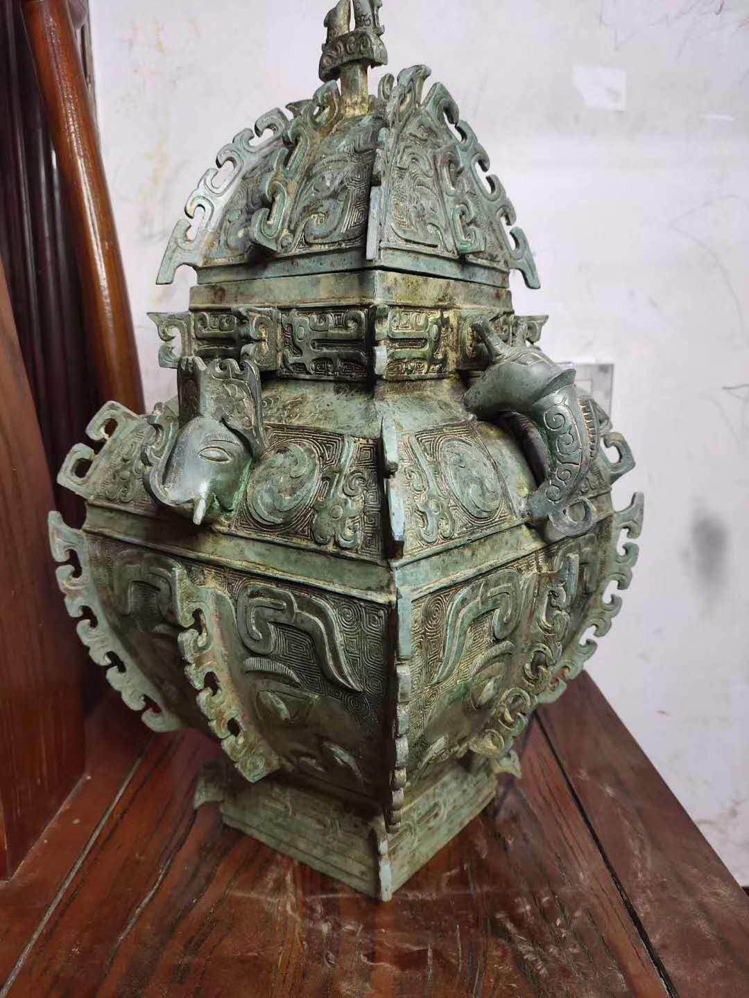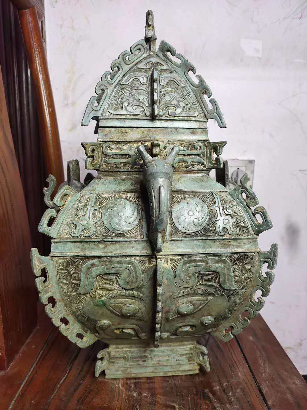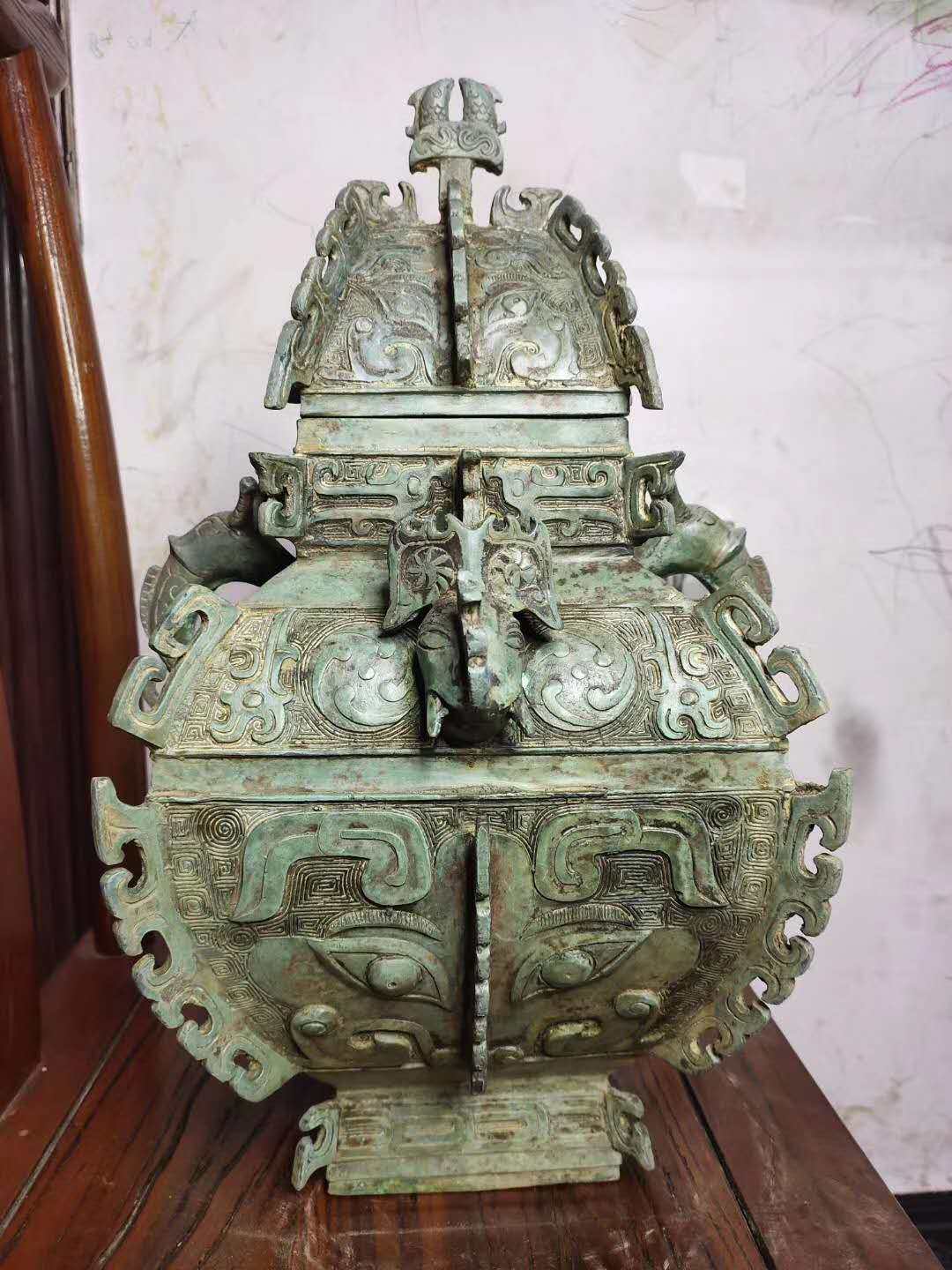 Antique Bronze Ware Shang Dynasty Puddle Light Skin Red Spot Green Rust Ornament Antique Film and Television Teaching Aids