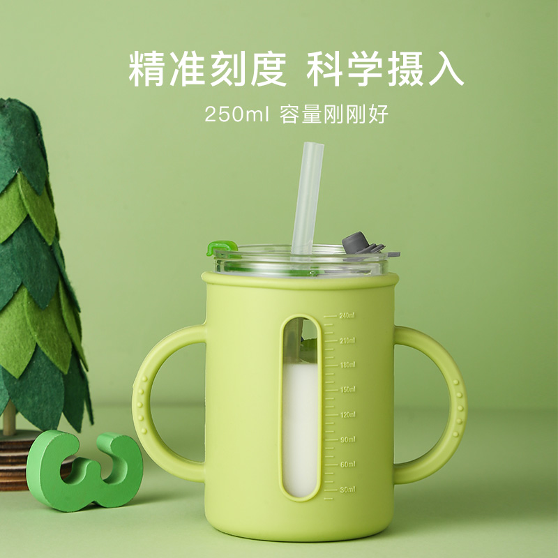 Children's milk cup anti-fall microwave oven can heat baby with straw brewing special drinking milk powder scale glass cup-Taobao