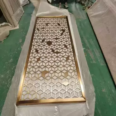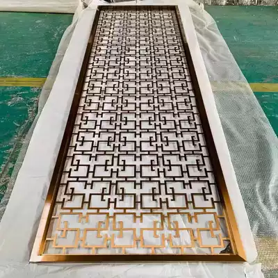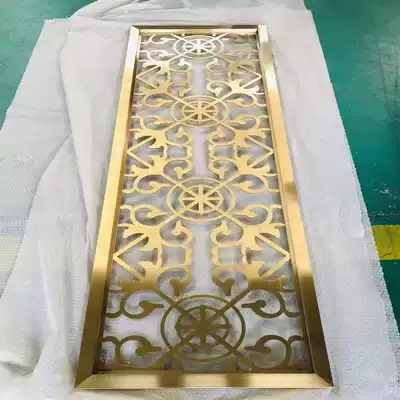 Gold stainless steel aluminum carved screen partition brushed titanium alloy decorative lattice entrance hollow light luxury rose gold customization