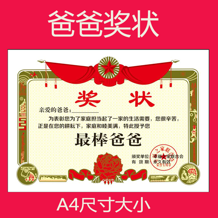A4 Father's Day to send dad creative small gifts gifts school training institutions event prizes good dad certificate