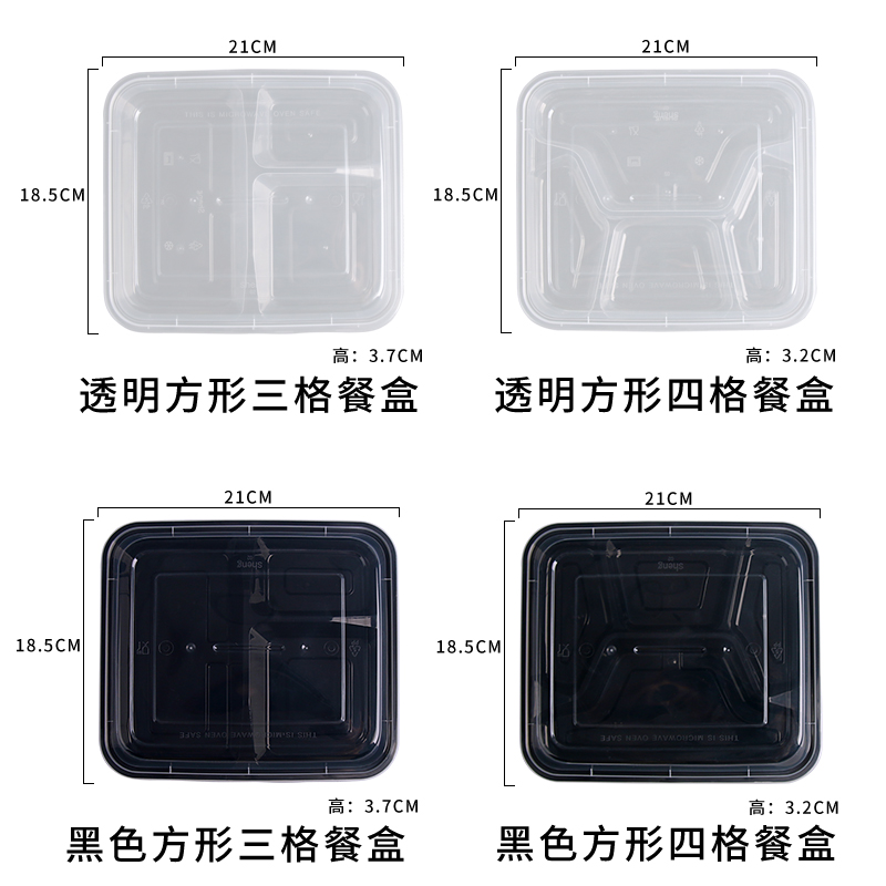 Disposable meal kit Divided Pack Case Rectangular Triple Four Lattice Thickened Transparent Plastic Commercial With Lid Packed Lunch Box