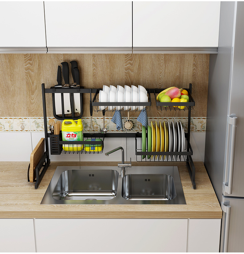 Kitchen stainless steel sink rack dish rack household punch-free tableware drain rack floor-to-ceiling water filter storage rack